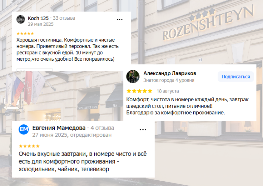Мы работаем для вас и делаем все, чтобы отдых в отеле Rozenshteyn был комфортным, безопасным и оставил только положительные эмоции в вашей памяти.